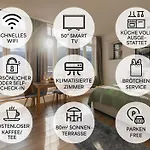 En séjournant dans cette propriété Mainterrasse Boardinghouse Am Fluss Klimatisierte Apartments Mit 80Qm Terrasse vous aurez accès à un coin salon équipé de la climatisation. Pour assurer votre confort, une toilette séparée et une douche sont mises à votre disposition à l'appartement. Un sèche-cheveux et des serviettes sont également présents dans la salle de bain.